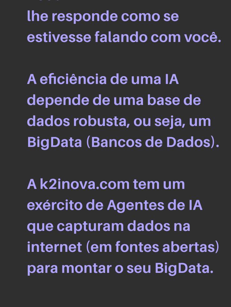 Obs.: O processamento das soluções de IA é realizado em supercomputadores da Amazon, localizados em Seatlle, USA com tecnologia da k2inova.com e acesso via PC ou celular.