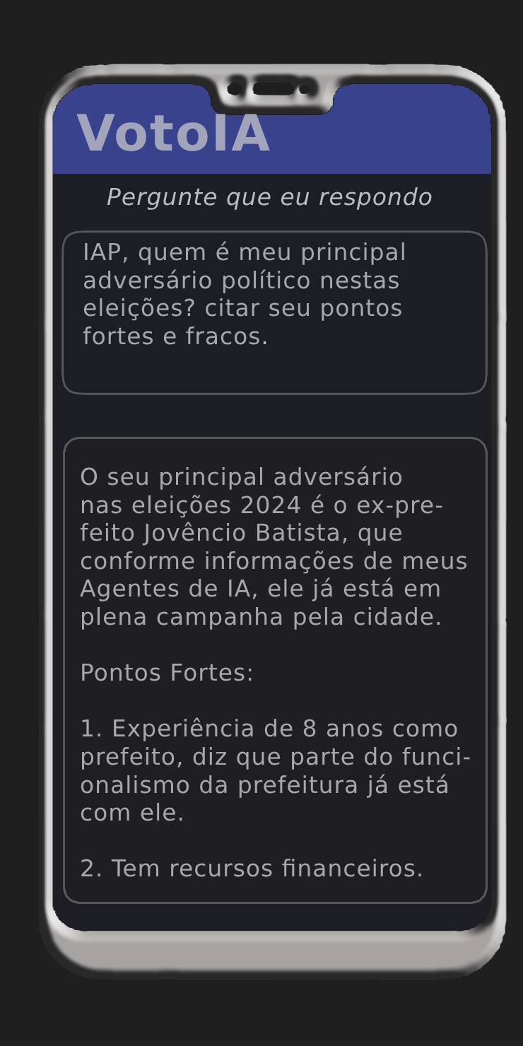 A WhatsVoto.IA é formada por super computador com ferramentas de gestão, manuais de operação, softwares e hardwares para a sua eleição em 2024 que é disponibilizado para a campanha do candidato.