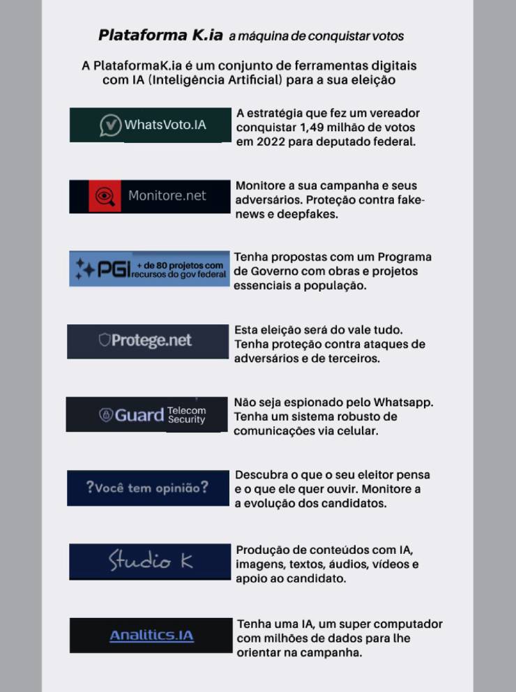 A k2inova.com desenvolveu a Plataforma WhatsVoto.IA que é um conjunto de sistemas de Inteligência Artificial, IA com a eficiência do Whatsapp, para a organização e estruturação de sua campanha.